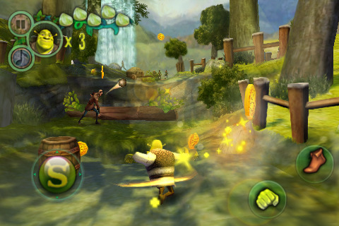In dem 3D-Abenteuer Shrek Forever After schlüpft ihr selbst in die Rolle des grünen Kinohelden und müsst elf verschiedene und spannende Level hinter euch bringen, die voller Gefahren stecken. In der 3D-Umgebung könnt ihr alternativ auch zwei andere Figuren steuern.