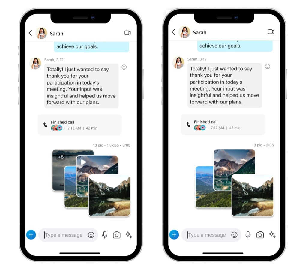 Bei der Neugestaltung hat sich Skype durchaus von anderen Messengern inspirieren lassen, wobei die eigene App ja scho durchaus ein bisschen in die Tage gekommen ist. Werden beispielsweise mehrere Fotos gleichzeitig versendet, werden diese im Chat als schicker Stapel angezeigt. Ebenso wurden Antworten auf vorhandene Nachrichten verbessert und optisch neu gestaltet, um sie besser in den Chat zu integrieren.