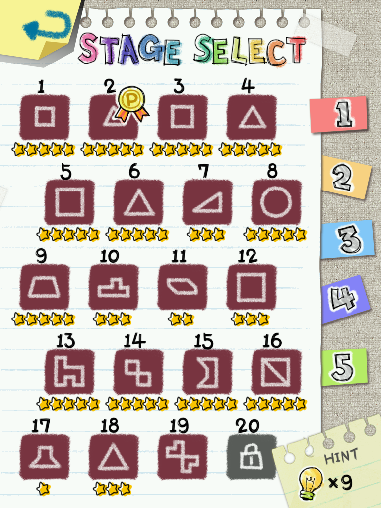 Nach jedem bestandenen Level bekommt man eine Punktzahl. Diese orientiert sich an der Genauigkeit. Sind alle Teile fast gleich groß, gibt es fünf Sterne. Sind eine oder mehrere Teile zu groß oder klein geraten, gibt es Abzüge. Die unpassende Teile werden dabei farblich markiert – so weiß man genau, wo man ansetzen muss, um doch noch die fünf Sterne zu bekommen.