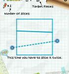 Das Spielprinzip von Slice It! ist wirklich einfacher kaum zu verstehen. Eine geometrische Figur muss mit einer bestimmten Anzahl von Strichen in die geforderte Anzahl von Stücken geteilt werden. Um die maximale Punktzahl zu erhalten, sollten dabei alle Teile eine möglichst identische Größte haben.