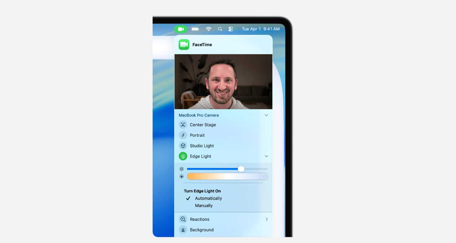 Apple hat mit macOS Tahoe 26.2 die Funktion „Edge Light“ auf dem Mac eingeführt, eine cleveres Feature, dass das Display des Macs während Videoanrufen in ein virtuelles Ringlicht verwandelt. Sitzt man in einem dunklen Raum, kann das „Edge Light“ mit der Displayhelligkeit das Gesicht automatisch beleuchten, um so für ein besseres Bild zu sorgen.