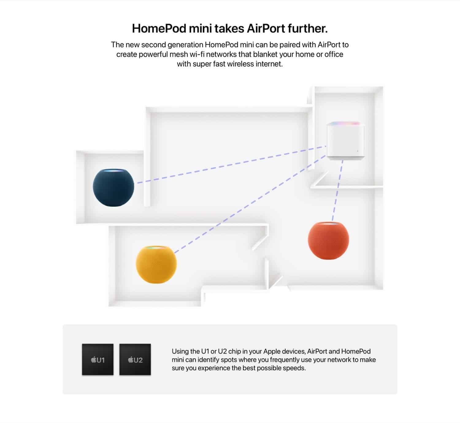 Parker Ortolani sieht den neuen AirPort als Zentrale für das eigene Smart Home. Ausgestattet mit WiFi 6E, Siri, HomeKit und Matter sowie einem integrierten VPN-Dienst – alles möglich gemacht durch einen A15 Chip von Apple selbst. Zusammen mit einem oder mehreren möglichen HomePod mini der zweiten Generation könnte der neue AirPort das WLAN-Signal im ganzen Haus verteilen.