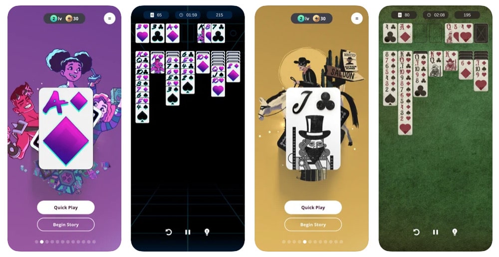 Solitär-Geschichten ist Anfang Juli 2021 auf Apple Arcade gelandet und ist in einem modernen Layout mit vielen verschiedenen Deck-Designs und Themes gehalten. Neben einem schnellen Spiel, bei dem ihr ganz klassisch eine Runde Solitär absolvieren könnt, hat das Kartenspiel aber noch mehr zu bieten. So gibt es einen Story-Modus, bei dem ihr eine fortschreitende Reise durch immer schwieriger werdende Level absolvieren dürft. Und auch tägliche Herausforderungen samt Belohnungen und Wettbewerbe stehen bereit. Mit einen weiteren Update wurde zudem auch ein Spider-Solitär-Spielmodus hinzugefügt.