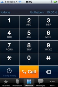 forfone (App Store-Link) kann kostenlos geladen werden. Selbst ohne Guthaben lässt sich die App nutzen, neben Kurznachrichten und Telefonaten zu anderen forfone-Nutzern finden wir die Möglichkeit, 100 Minuten im Monat kostenlos ins deutsche Festnetz zu telefonieren, sehr praktisch.