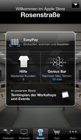 Ebenfalls neu in Deutschland ist die EasyPay-Funktion. Wie der Name schon sagt wird der Kauf erleichtert, denn jetzt kann man in den Apple Stores vor Ort Zubehör mit dem iPhone bezahlen und muss sich somit nicht in lange Schlangen vor den Kassen einreihen – vor allem in der Weihnachtszeit könnte es zu längeren Wartezeiten kommen, die man so umgehen kann.