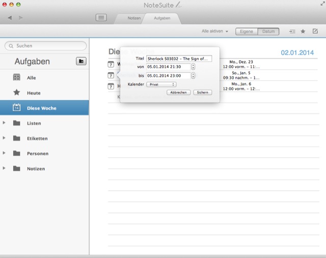 Berührt man eine bestehende Aufgabe, kann man sie bearbeiten. Auch verschieben oder löschen ist ohne großen Aufwand möglich. Und wenn die Aufgabe erledigt ist, hakt man sie einfach im betreffenden Feld ab. Und wenn man eine Erinnerung nicht mehr findet, kann die integrierte Suche helfen.
