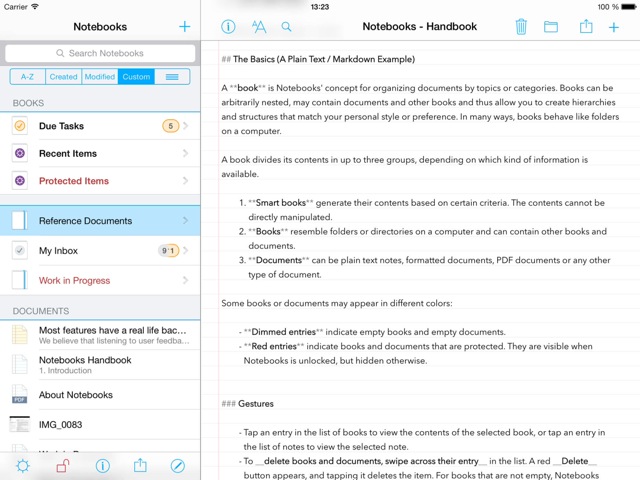 Auf den ersten Blick macht Todo einen sehr aufgeräumten Eindruck. In einem kleinen Notizbuch werden links alle Ordner angezeigt, auf der rechten Seite findet man die bereits vorhandenen Aufgaben. Außerdem sind sämtliche Farben, sei es das Papier oder das Leder, in den Einstellungen anpassbar.