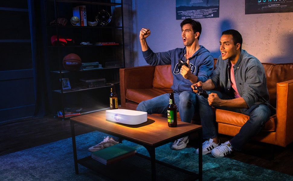 In unserem Video (YouTube-Link) haben wir ein paar Bilder und Videos an die Wand geworfen. Der TrekStor i.Gear lumio funktioniert aufgrund der Hüllen-Bauform nur mit dem iPhone 4 oder 4S. Es ist auch möglich, AirPlay-fähige Apps zu projizieren – zum Beispiel Keynote, Goodreader oder iCab Mobile.