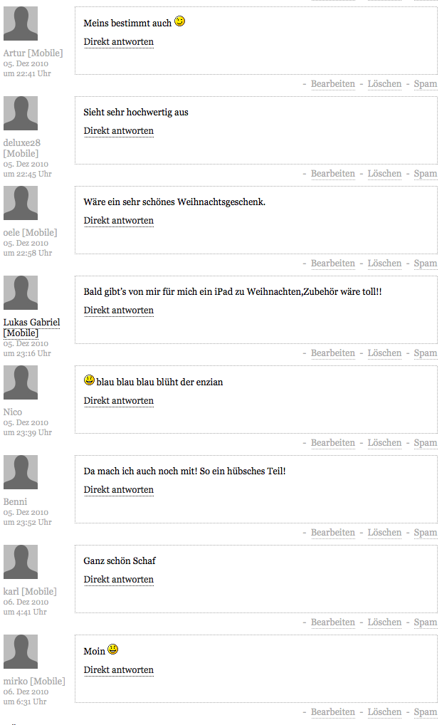 Wir haben nicht nur lustige Kommentare gefunden, sondern auch komplett sinnlose. So gab es bei uns iPhone-Hüllen zu gewinnen, die auf der Rückseite entweder London oder Berlin zeigten. iTrist wollte allerdings einen Clip mit Lampukistan, basti wollte Ibiza, Jan würde Köln toll finden. Des Weiteren sind Städte wie Hamburg, Hannover und Dresden gefallen. Hier möchten wir noch einmal erwähnen, dass man den Artikel auch vorher lesen sollte.