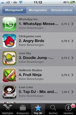 Wie ihr am Screenshot und vielleicht auch auf eurem iPhone sehen könnt, fehlen zum Beispiel in den Top-25-Listen oder auch auf der Startseite die altbewährten Sterne. Wir haben uns natürlich auch gefragt, woran das liegen kann.