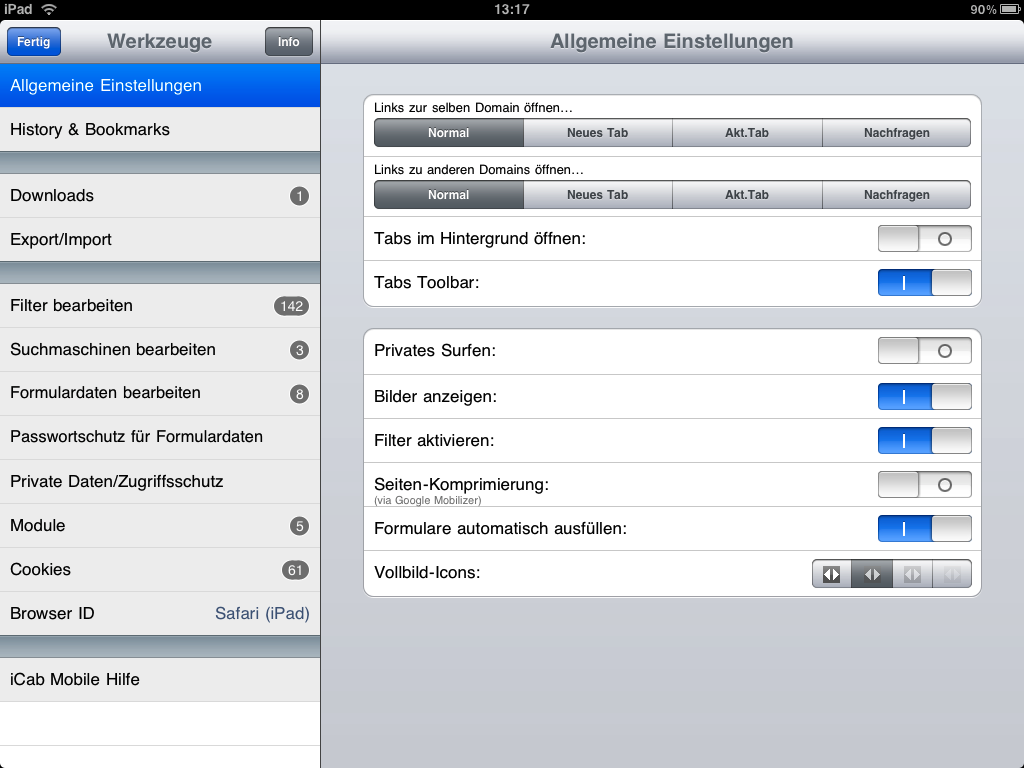 Lediglich eine kleine Restriktion stört uns. Wenn man zum Beispiel einen Link per Mail zugeschickt bekommt und diesen anklickt, öffnet sich Safari. Eine Einstellmöglichkeit gibt es nicht – hier liegt das Problem aber auf der Seite von Apple, nicht von iCab Mobile.