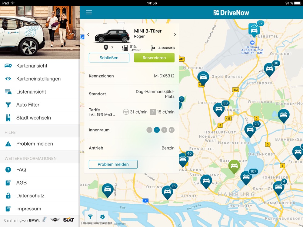 DriveNow ist derzeit nur in München verfügbar, was das Angebot natürlich etwas eingrenzt. Wenn man allerdings schnell von A nach B kommen möchte, kann man schnell ein Auto suchen und die Fahrt sofort beginnen. Weitere Infos gibt es übrigens hier. Findet ihr das Projekt ebenfalls interessant?