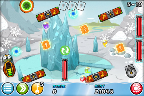 Das Spielprinzip ist schnell erklärt: Bunte Fische müssen so mit dem Finger aus ihrem Netz „geklickt“ werden, dass sie durch die Spielwelt bis zum farbig passenden Pinguin rollen, der sie mit großem Genuss verzehrt. Belohnt wird der Spieler mit Eiscreme, die man tunlichst antippen sollte, um auch die vollen drei Sterne zu kassieren.