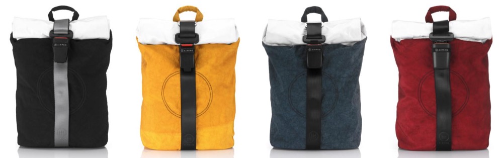 Ich bin vor einiger Zeit über die Kickstarter-Aktion des noch jungen Unternehmens auf den Airpaq aufmerksam geworden und habe mittlerweile auch einiges über die Geschichte der beiden Gründer Adrian und Michael erfahren. Alles begann mit einem Masterstudium in Rotterdam im Jahr 2015, als die beiden Studenten sich ein Apartment teilten, und auch gleichzeitig für ein Kursprojekt einen Schrottplatz besuchten. Fasziniert von all den Möglichkeiten des Re- und Upcyclings erstanden die beiden für ein paar Euro einen Airbag, Sitzgurte und andere Materialien und machten sich mit einer uralten Singer-Nähmaschine ans Werk.