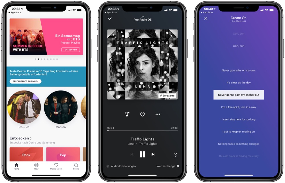 Der Musikdienst Deezer (App Store-Link) steht in direkter Konkurrenz zu Spotify, Apple Music und Co. Wir in der Redaktion setzen bisher geschlossen auf Spotify – aber wer weiß, wie sich der hart umkämpfte Markt in diesem Bereich in der kommenden Zeit entwickelt. Das Premium-Abonnement von Deezer kostet monatlich wie bei vielen anderen Streaming-Diensten 9,99 Euro, ein Familienangebot für bis zu 5 Personen ist für 17,99 Euro/Monat zu haben. Die deutschsprachige iOS-App ist 139 MB groß und kann ab iOS 9.0 auf iPhones und iPads installiert werden.