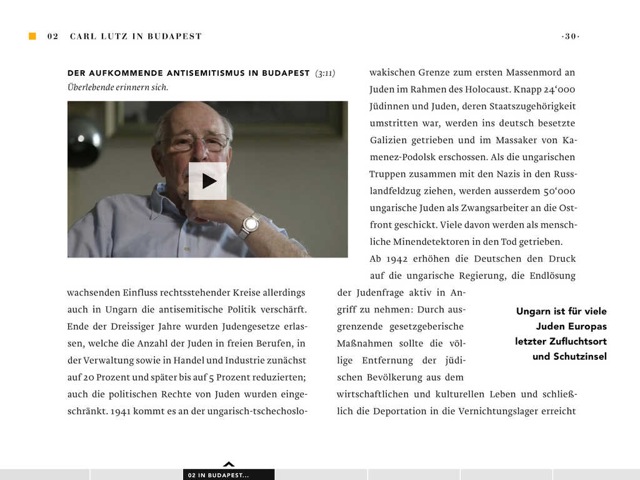 Dieser beeindruckenden Geschichte, die auch im deutschsprachigen Raum noch immer weitestgehend unbekannt ist, widmet sich nun die iPad-App Carl Lutz – Ein vergessener Held (App Store-Link), die kostenlos aus dem deutschen App Store heruntergeladen werden kann. Aufgrund der vielen interaktiven Elemente sollte man knapp 400 MB an freiem Speicherplatz auf dem Apple-Tablet für die App freihalten. Die Inhalte sind in deutscher und englischer Sprache gehalten und erfordern zur Installation mindestens iOS 6.0 oder neuer.