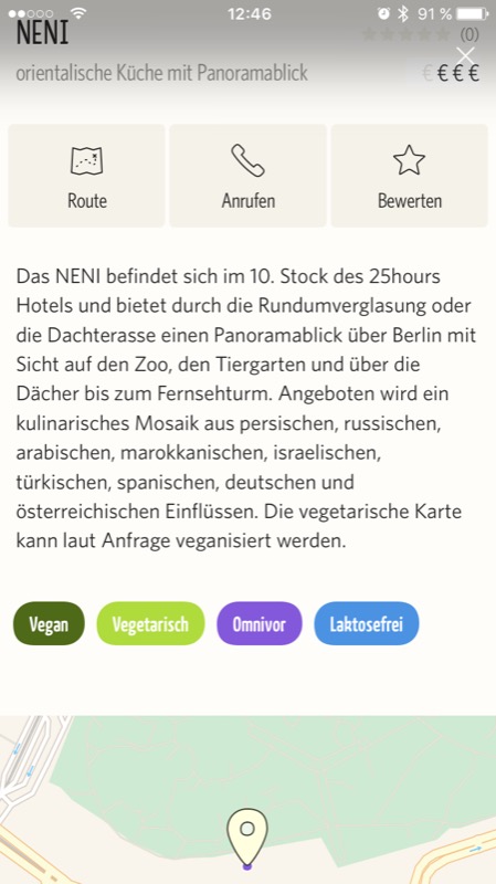 Vanilla Bean (App Store-Link), mit vollem Titel, „Vanilla Bean – Grün essen gehen: Vegan und vegetarisch, Bio, laktose- oder glutenfrei“, ist eine kostenlos im deutschen App Store erhältliche iPhone-App, die nur etwa 7 MB eures Speicherplatzes in Anspruch nimmt und sich ab iOS 8.0 auf das Gerät herunterladen lässt. Alle Inhalte stehen in deutscher Sprache bereit.