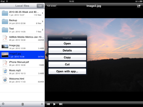 Vorweg sei schonmal gesagt, dass es sich um eine Universal-App handelt und somit für iPhone und iPad genutzt werden kann. FileApp Pro unterstützt fast alle Formate von Dateien. Es können Office Dokumente, PDF’s, HTML Dateien, iWork Dokumente, ZIP Dateien und viele weitere geöffnet und angezeigt werden.