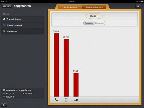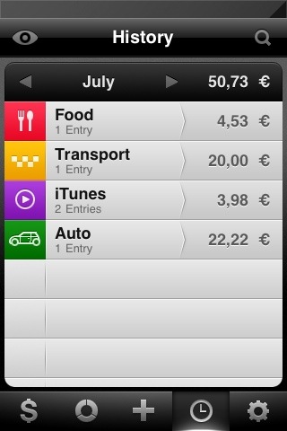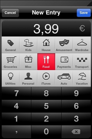 Hier gibt es gleich zwei kleine Kritikpunkte, an denen wir ansetzen müssen. Zum einen kann man keine eigenen Kategorien für Ausgaben erstellen, noch kann man die Reihenfolge der Anordnung ändern. Viel schlimmer allerdings: Beträge unter einem Euro können nicht gespeichert werden, vermutlich ein Bug. Gerade wenn man seine Einkäufe aus dem App Store eintragen will, könnte man hier betroffen sein.