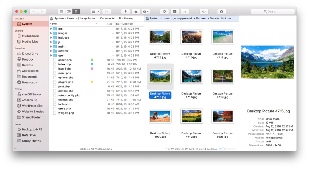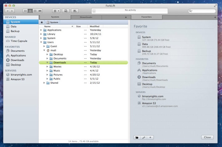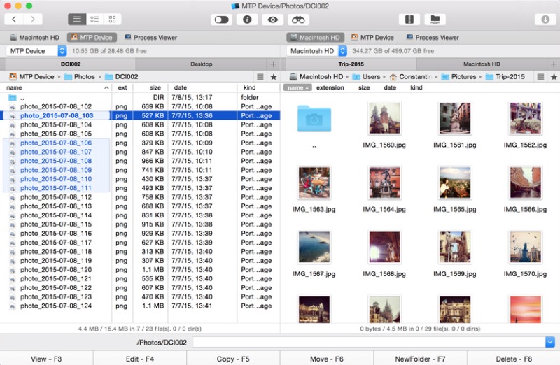 Die Macher von Eltima betonen, dass die mit Commander One eine Möglichkeit geschaffen haben, das Beste des Standard-Finders mit einem Zwei-Spalten-Dateimanager, der komplett mit Swift entstanden ist, zu verbinden. Neben drei verschiedenen Ansichts-Modi – komplett, Kurzform und Thumbnails – gibt es auch eine Option, versteckte Dateien über einen kleinen Button in der Toolbar anzeigen zu lassen. Jeder Ordner lässt sich zudem in einem neuen Tab öffnen – die Anzahl der Tabs sind dabei unbegrenzt.