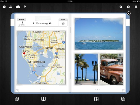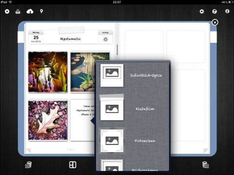 Photobook+ hält ganze 47 verschiedene Seitenlayouts bereit, mit denen sich unendlich viele Fotoalben erstellen lassen. Das Material zum Füllen der Seiten kann aus der Camera Roll des iPads, aber auch aus dem Photostream eingefügt werden. Wer ein Camera Connection Kit für das iPad besitzt, kann auf diese Weise ebenfalls tätig werden, und die von der eigenen Kamera übertragenen Fotos verwenden.