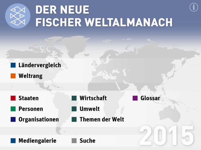 Schon seit vielen Jahren ist der Fischer Weltalmanach ein beliebtes Nachschlagewerk, wenn es um Informationen zu Staaten, Bevölkerungszahlen, Ländervergleiche, Statistiken und Fakten zu Personen des Zeitgeschehens geht. Im neuen Fischer Weltalmanach 2015 stehen laut Angaben der Developer vom USM Verlag über 300.000 Daten sowie mehr als 900 Grafiken, darunter Karten, Tabellen und Bilder, zum schnellen Zugriff bereit.