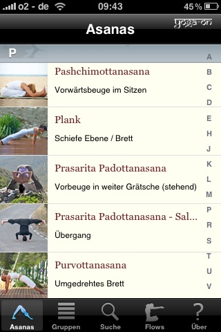 Direkt nach dem Start wird man von einer langen Liste an komisch klingenden Zusatzstoffen begrüßt. Die lange Liste ist entweder mit dem Finger oder der Seitenleiste am rechten Rand scrollbar und entweder alphabetisch nach Zusatzstoffen oder den E-Nummern sortierbar.