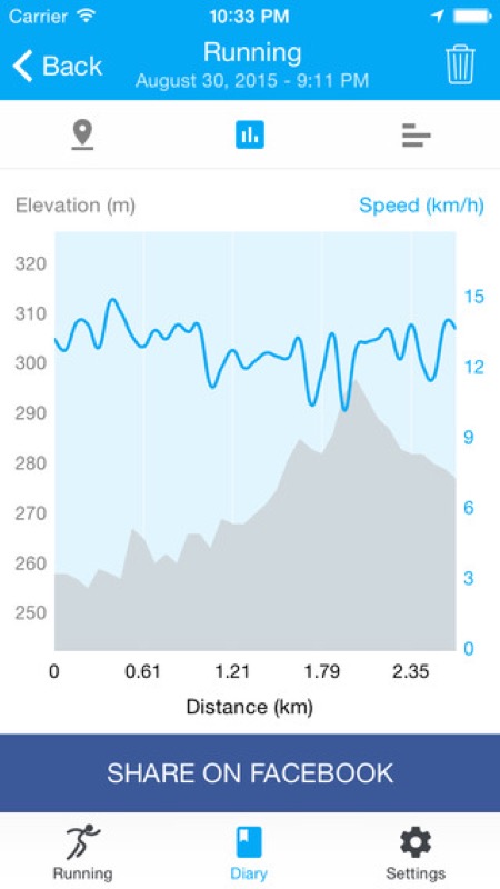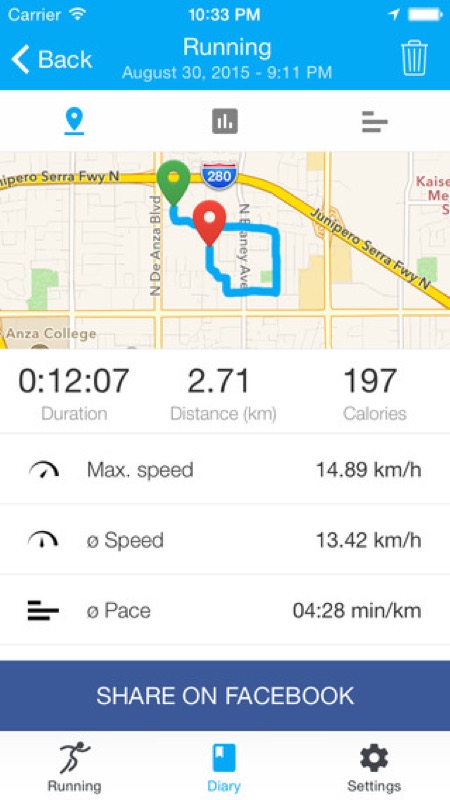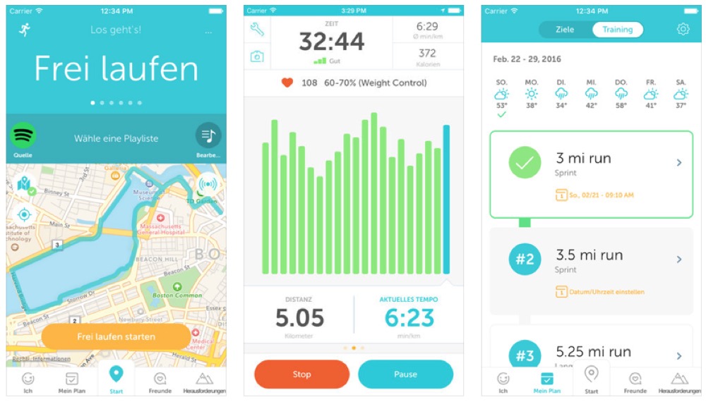 Nach jedem Lauf kann man sein Training direkt auf dem iPhone analysieren, die gelaufene Strecke auf einer Karte anschauen und sehen, wo man wie schnell war, auch Höhenmeter werden hier angezeigt.