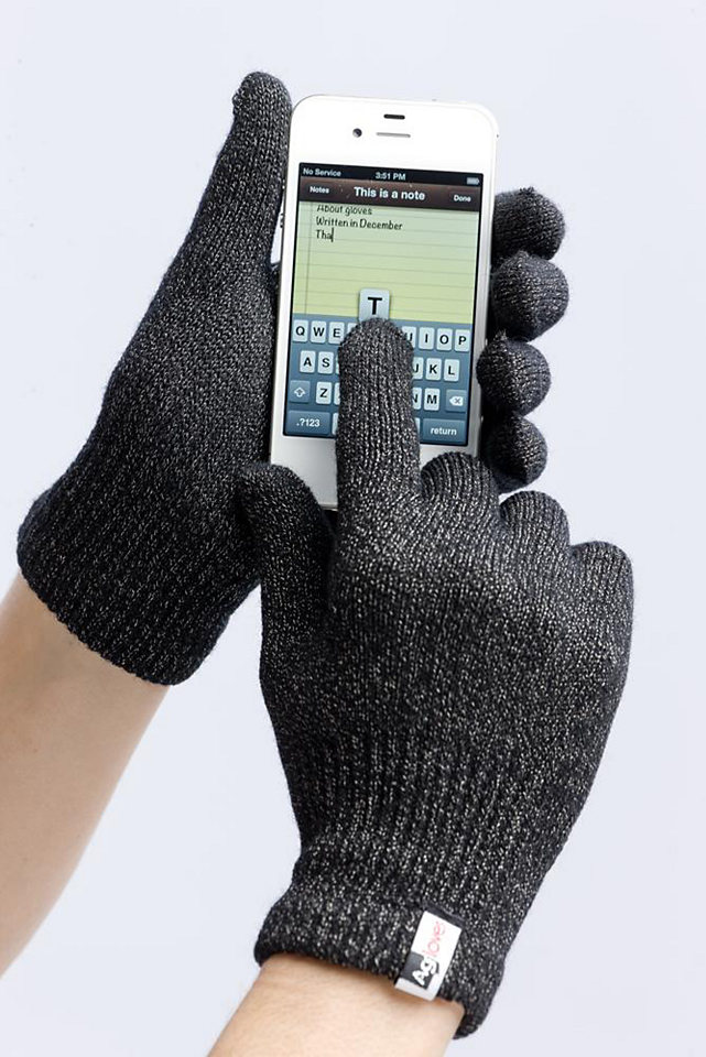 Mit den Agloves kann man das iPhone oder iPad mit zehn Fingern bedienen. In die Handschuhe selbst wurde ein spezielles Material eingearbeitet, das ermöglicht, das Gerät mit allen Fingern zu bedienen. Im Gegensatz zu anderen Handschuhe, mit denen das Gerät nur mit Daumen und Zeigefinger bedient werden kann, punkten die Agloves in Sachen Bedienbarkeit.