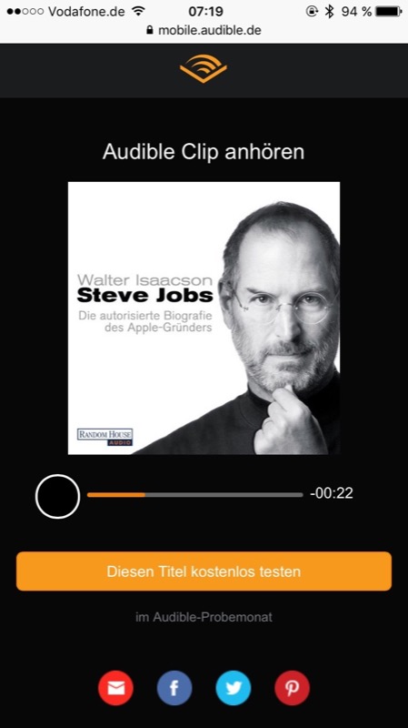 Dass Prime-Kunden den Hörbuch-Anbieter Audible ganz ohne Risiko drei Monate lang ausprobieren können und sich in dieser Zeit drei Hörbücher aussuchen können, dürfte mittlerweile hinlänglich bekannt sein. So spart man sich nicht nur die sonst anfallenden 30 Euro, sondern bekommt auch noch drei möglicherweise sogar deutlich teurere Hörbücher, die man dauerhaft behalten darf.