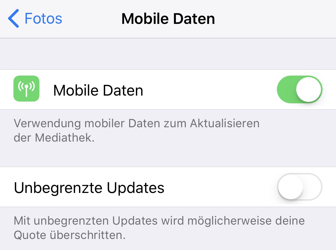 iOS 11: iCloud-Fotomediathek lädt Bilder und Videos über das mobile Netz