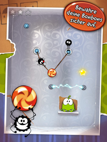 Cut the Rope HD: Einfach, aber doch genial. In Cut the Rope schneidet man kleine Seile durch, um dann einen kleinen grünen Frosch mit den herunterfallenden Süßigkeiten zu füttern. In insgesamt 300 Leveln muss man versuchen, dabei auch noch alle drei Sterne zu sammeln. Durch zahlreiche Gagdets, angefangen bei Luftpumpen, Saugnäpfen und Zauberhüten bis hin zu Gefahren wie gefräßigen Spinnen und gefährlichen Blitzen wird dieses tolle Casual-Spiel erst so richtig spannend. (iPad, 3,59 Euro)