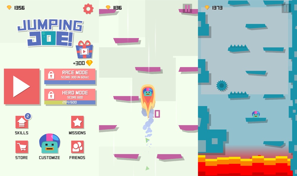 Jumping Joe: Nachdem Fabian das Spiel quasi durchgespielt hat, habe auch ich mir Jumping Joe installiert und starte es immer wieder für eine schnelle Runde. Mit dem kleinen Joe springt man über Plattformen immer weiter nach oben. Dabei muss man sich stets für einen Sprung nach links oder rechts entscheiden, den man mit einem Fingerwisch in die entsprechende Richtung ausführt. Viele Gefahren und weitere Hindernissen erschweren das Gameplay. Jumping Joe ist als Freemium-Spiel konzipiert. (zum ausführlichen Bericht)