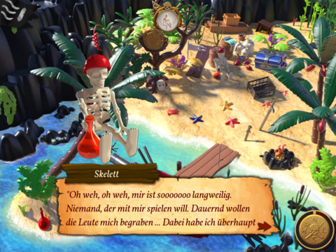 „Playmobil Der Piratenschatz“ (App Store-Link) kostet 1,79 Euro und steht ausschließlich für das iPad mit einer Downloadgröße von 128 MB bereit. Die App setzt mindestens iOS 3.2 oder höher voraus und sollte somit ohne Probleme auf jedem iPad laufen. Man schlüpft in die Rolle des jungen Piraten Peter Flint, der sich mit seiner Crew auf die Suche nach einem sagenumworbenen Goldschatz begibt.