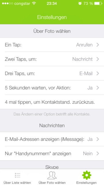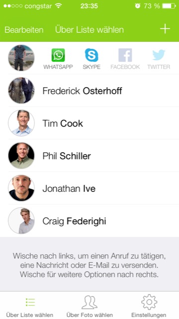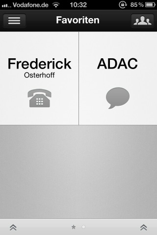 Das ganze funktioniert wie folgt: Zunächst erstellt man entsprechende Gruppen, wie zum Beispiel Freunde, Arbeit oder Favoriten. Diese Gruppe füllt man danach mit Freunden und wählt ein Shortcut (Mail, Handy, SMS) aus, über das man in der späteren Übersicht eine bestimmte Aktion direkt durchführen kann. Will man eine andere Aktion durchführen, genügt ein Doppelklick auf den Kontakt.