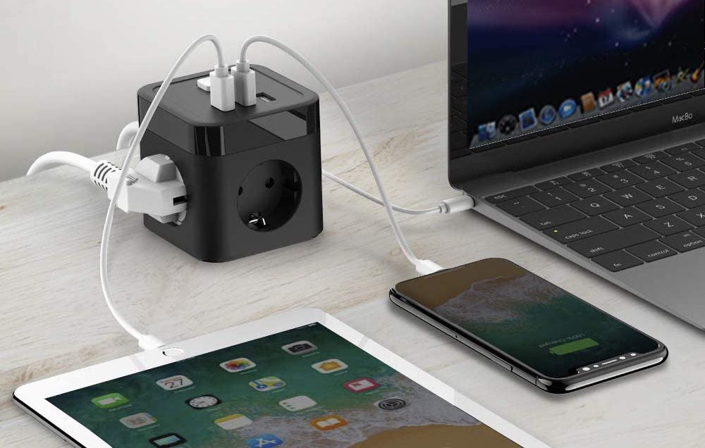 Steckdosenwürfel für 17,58 Euro: Drei USB und drei Stecker im praktischen Format Nur auf USB-C muss man leider verzichten