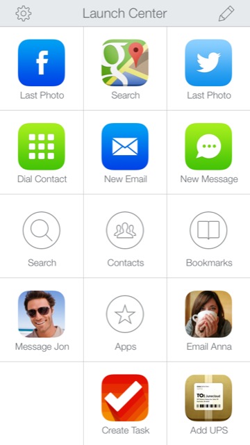 Bevor wir zu den neuen Funktionen kommen, wollen wir aber zunächst einmal erklären, was Launch Center Pro denn überhaupt macht. In Zusammenarbeit mit vielen anderen Apps sind zahlreiche Abkürzungen entstanden, mit denen man bestimmte Aktionen schneller ausführen kann – etwa ein halbautomatischer Tweet des letzten Fotos oder eine vorbereitete E-Mail an bestimmt Kontakte. Eine komplette Übersicht der Funktionen gibt es auf dieser Webseite.