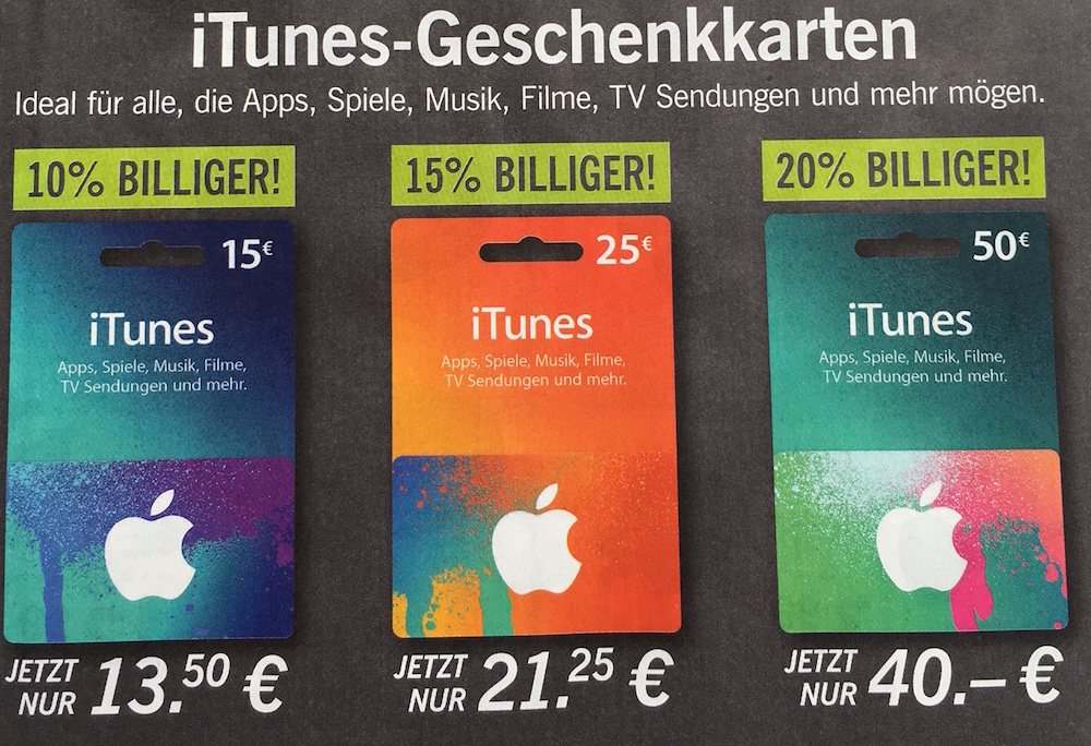 Anscheinend müssen wir uns langsam aber sicher damit abfinden, dass es so schnell keine 20 Prozent Rabatt mehr auf iTunes-Karten mehr geben wird. Auch in der kommenden Woche könnt ihr nur halb so viel sparen, dann nämlich gibt es bei Lidl und Real 10 Prozent Preisnachlass auf iTunes-Geschenkkarten. Gerade wenn das Guthaben auf dem Konto aufgebraucht ist, ist das aber immer noch besser als nichts.