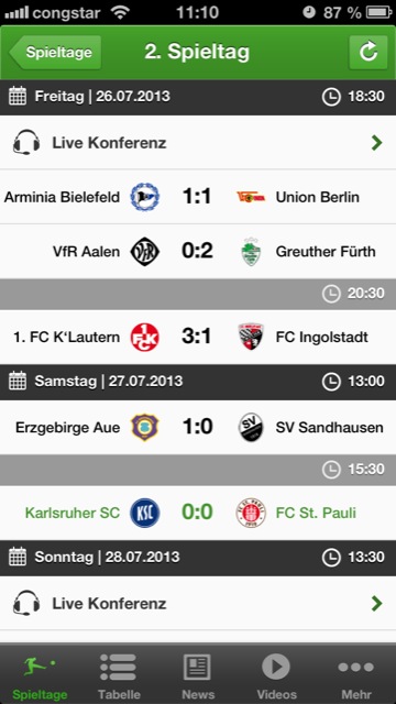 Mit Sicherheit DER Klassiker für das aktuelle Fußballgeschehen auf allen iDevices. iLiga ist nicht nur gratis, sondern verfügt auch über zahlreiche Infos, Tabellen, Spieltage, Videos und News zu über 100 internationalen Ligen und Wettbewerben. Auch wenn der Live-Ticker nicht immer ganz der schnellste ist: Push-Benachrichtigungen, Statistiken und Kader-Infos entschädigen dafür auf ganzer Linie. Mit einem kostenpflichtigen Saisonpass kann man sich von den Werbebannern am unteren Bildschirmrand befreien.