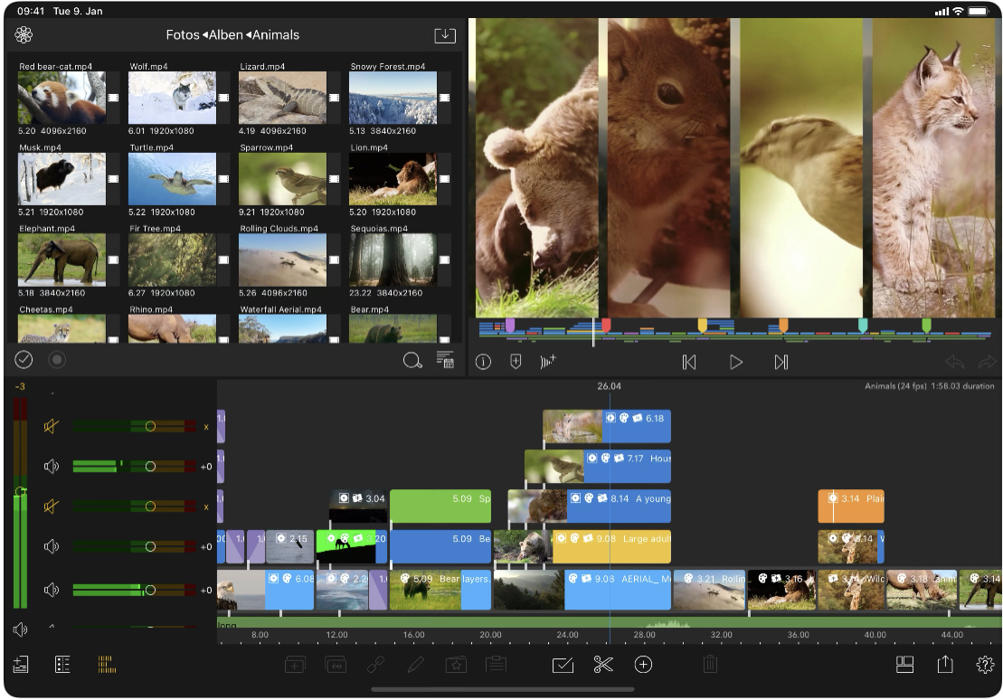 iMovie für iOS ist ein guter Einstieg in die Welt der Videobearbeitung, bietet aber lediglich Basisfunktionen. Das deutlich professionellere Video-Editing-Tool Final Cut Pro für Mac und iPad ist nicht günstig. Die wohl beste Alternative für iPhone und besonders für das iPad ist der Video-Editor LumaFusion (App Store-Link). Die Anwendung kostet aktuell per Einmalkauf 29,99 Euro im deutschen App Store.