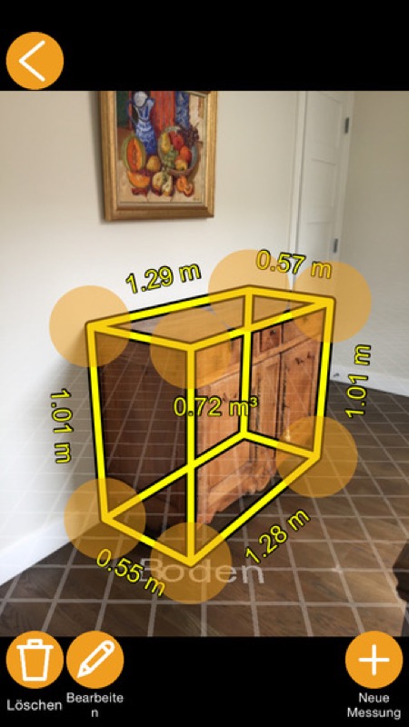 Mit MagicMeasure soll es möglich sein, verschiedene Gegenstände, seien es Vasen auf dem Tisch, Möbel, oder andere Räumlichkeiten oder Objekte ohne Zurhilfenahme eines Massbandes oder Zollstocks auszumessen. In der kostenlosen Basis-Variante von MagicMeasure kann allerdings immer nur ein Bild mit zu vermessenen Gegenständen gespeichert werden – möchte man mehrere aufnehmen und sichern, wird ein einmaliger In-App-Kauf von 3,99 Euro fällig, der die Vollversion der App freischaltet.
