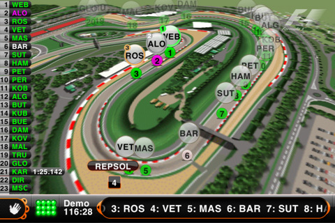 Nachtrag: Wer auf deutsche News und die virtuelle Streckenkarte verzichten kann, kann sich auch die offizielle und kostenlose F1-Timing-App für das iPhone laden. Ein Account auf formula1.com wird vorausgesetzt.