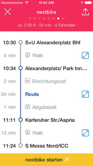 Die Auflistung erfolgt dabei untereinander und aktualisiert sich automatisch. Mit einem einfachen Wisch nach links und rechts kann man ganz einfach die vorherige oder folgende Verbindung anzeigen lassen, mit einem Fingertipp gelangt man zu den Details, außerdem lässt sich die Strecke auch umkehren.