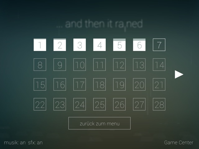 Wer vom sanften Plätschern eines Regengusses, vermischt mit entferntem Donnergrollen und zuckenden Blitzen nicht genug bekommen kann, sollte sich definitiv And Then It Rained (App Store-Link) genauer ansehen, das mit minimalistischen Grafiken und einem sehr entspannenden Soundtrack daher kommt. Zum Preis von 1,79 Euro gibt es ein knapp 37 MB großes Game, das auf iPhones, iPod Touch und iPads installiert werden kann, die mindestens über iOS 4.3 verfügen.