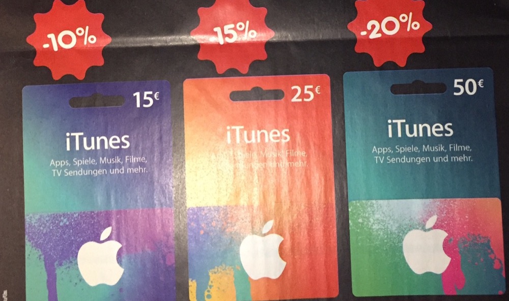 In der kommenden Woche gibt es mal wieder iTunes-Karten mit dem bekannten Rabatt in Höhe von 20 Prozent.
