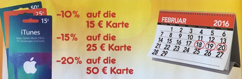 Mittlerweile ist es zum guten Standard geworden, sein iTunes-Guthaben an der Supermarkt-Kasse zu kaufen und dabei von einem Rabatt zu profitieren. Meistens sind es 20 Prozent, so wie auch in der kommenden Woche beim Netto Marken-Discount. Das Angebot gilt ab dem 30. Juni die gesamte Woche über.