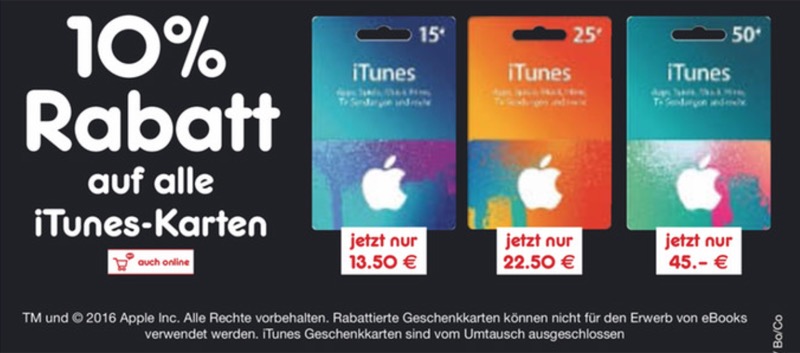 Wie immer gilt: Einfach iTunes-Karten kaufen und im App Store einlösen, um Musik, Videos, Apps und auch Bücher etwas günstiger zu laden. Und wer kein Angebot mehr verpassen möchte, meldet sich für unseren Newsletter an.