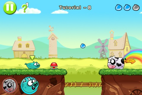 In mehr als 40 Leveln kämpft man sich mit einer Kuh, einem Schwein und einem Huhn zum Ausgang. Der Weg dorthin ist mit allerlei kleinen Hindernissen gespickt: So müssen mit Schaltern versehene Hebebühnen oder Tore bewältigt oder Gräben übersprungen werden. Da jedes Tier bestimmte Eigenschaften hat und man im Level zwischen den vorhandenen Tierchen hin- und her switchen kann, bekommt das Spiel dadurch eine besonders interessante Note. Erschwert wird alles noch durch die Tatsache, dass auf jeder Ebene Farbtröpfchen eingesammelt werden müssen, um spätere Level freischalten zu können.