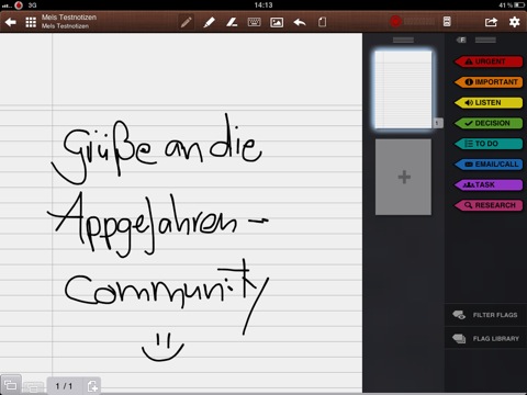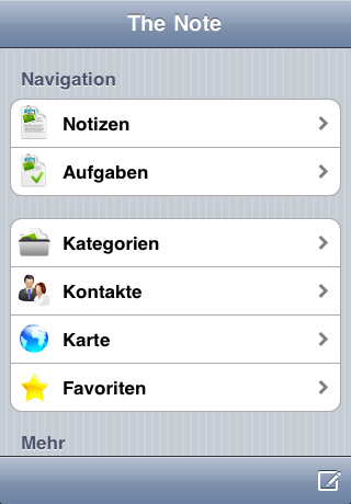 Schön animiert öffnet sich dann das jeweilige Notizbuch, und man trägt über die Tastatur des iDevices seine Gedanken, Listen oder sonstige geistige Ergüsse ein. Dabei stehen zehn verschiedene Schriftarten in unterschiedlichen Farben und Größen bereit. Auch der Stil des Papiers kann aus verschiedenen Varianten ausgewählt werden. Realistische Umblätter-Animationen und ein Inhaltsverzeichnis runden die App ab.