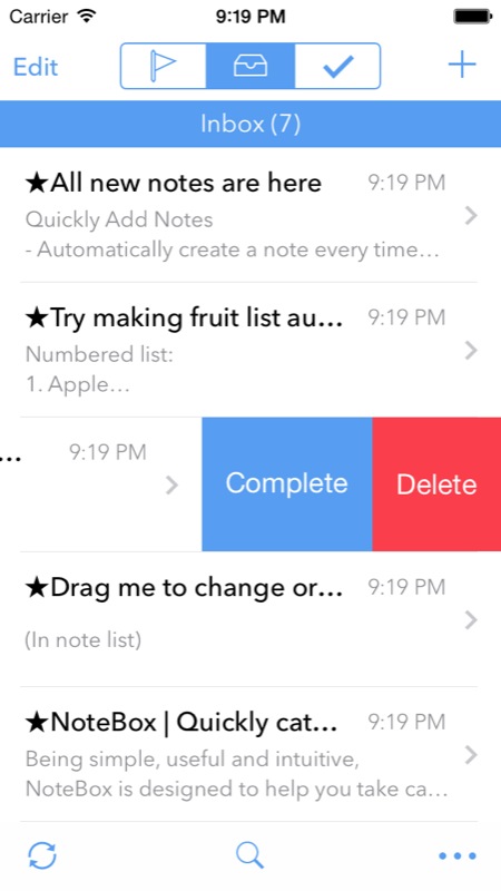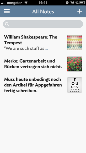 Am einfachsten kann man NoteBox als Posteingang für Textschnipsel beschreiben. Mit der App soll man zunächst einfach alles sammeln können, bevor man sich später Gedanken darüber macht, was wirklich wichtig ist und welche Informationen man behalten möchte. Aus der Inbox geht es in den Keep-Ordner, erledigte Sachen können in „Completed“ verschoben werden. Ihr erkennt es schon: Eine deutsche Lokalisierung fehlt in NoteBox noch.